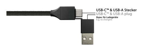 USB 6-in-1 Ladekabel 3A Textilmantel schwarz 1,2m