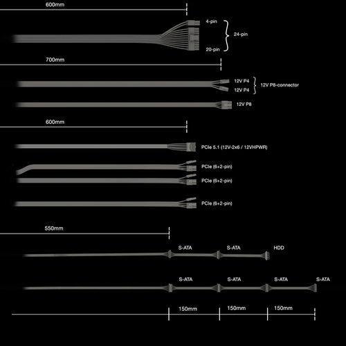 Zertifikate | | Konformität von Elektro- und Elektronik-Altgeräten (WEEE) | Ja | | Konformitätsbescheinigungen | BSMI, CB, CCC, CE, Eidgenössische Kommunikationskommission (FCC), RCM, RoHS, TÜV mark, UKCA, WEEE | Verpackungsdaten | | Betriebsanleitung | Ja | | Sprachen des Handbuchs | Deutsch, Englisch, Spanisch, Französisch, Polnisch, Russisch, Ukrainisch | | Verpackungsbreite | 248 mm | | Verpackungstiefe | 328 mm | | Verpackungshöhe | 102 mm | | Paketgewicht | 3,21 kg | | Verpackungsart | Box | Technische Details | | Nachhaltigkeitszertifikate | ENERGY STAR, ErP, Triman | Sonstige Funktionen | | Schrauben enthalten | Ja | | Kabelbinder inklusive | Ja | Logistikdaten | | Versandkartonslänge | 65,1 cm | | Versandkartonsbreite | 28,2 cm | | Versandkartonshöhe | 34,6 cm | | Menge pro Versandkarton | 6 Stück(e) | | Gewicht (innerer) Versandkarton | 19,3 kg | Leistungen | | Zweck | PC | | Stromversorgungseinheit (PSU) Formfaktor | ATX | | 80 Plus Zertifizierung | 80 PLUS Platinum | | ATX-Version | 3.1 | | EPS-Version | 2.92 | | Geräuschpegel | 15,8 dB | | Lagertyp | Gewehr | | Mittlere Betriebsdauer zwischen Ausfällen (MTBF) | 100000 h | Gewicht und Abmessungen | | Breite | 150 mm | | Tiefe | 160 mm | | Höhe | 86 mm | Energie | | Gesamtleistung | 750 W | | AC Eingangsspannung | 100 - 240 V | | Spitzenstrom | 820 W | | AC Eingangsfrequenz | 50/60 Hz | | Maximaler Eingangsstrom (bei 110V) | 10 A | | Maximaler Eingangsstrom (bei 220V) | 5 A | | Leistungsfaktor | 0,98 | | Anzahl der +12V-Schiene(n) | 1 | | Kombinierter Strom (+3.3V) | 120 W | | Kombinierter Strom (+12V) | 750 W | | Kombinierter Strom (+5V) | 120 W | | Kombinierter Strom (-12V) | 3,6 W | | Kombinierter Strom (+5Vsb) | 15 W | | Max. Ausgangsstrom (+3.3V) | 20 A | | Max. Ausgangsstrom (+12V) | 62,5 A | | Max Ausgangsstrom (+5V) | 20 A | | Max. Ausgangsstrom (-12V) | 0,3 A | | Max. Ausgangsstrom (+5Vsb) | 3 A | | Haltezeit | 24,5 ms | | Effizienz | 92,5 % | | Energieschutzeigenschaften | Überstrom, Überlastung, Überspannung, Überhitzung, Kurzschluß, Surge & inrush, Unterspannung | Design | | Produktfarbe | Schwarz | | Kühlung | Aktiv | | Lüfterdurchmesser | 14 cm | | Anzahl Lüfter | 1 Lüfter | | Ein-/Ausschalter | Ja | Betriebsbedingungen | | Betriebstemperatur | 0 - 40 °C | | Temperaturbereich bei Lagerung | -40 - 70 °C | | Relative Luftfeuchtigkeit in Betrieb | 0 - 85 % | | Luftfeuchtigkeit bei Lagerung | 0 - 95 % | Anschlüsse und Schnittstellen | | Motherboard Anschlussstecker | 20+4 pin ATX | | Anzahl Molex Anschlüsse 4pin | 1 | | Stromkabellänge Motherboard | 60 cm | | Anzahl SATA Stromstecker | 6 | | SATA-Netzkabellänge | 550,700,850,1000 mm | | Periphere (Molex) Netzkabellänge | 850 mm | | EPS Stromstecker (8-pin) | Ja | | Anzahl PCI Express Stromstecker 6+2pin | 3 | | PCI Express-Stromanschlüsse (16-polig) | 1 | | PCI Express Netzkabellänge | 60 cm | | CPU P4 Verbinder (4-pin) | 1 | | CPU Stecker (4+4 pin) | Ja | | CPU-Leistung Kabellänge | 70 cm | | Kabeltyp | Vollständig modular |