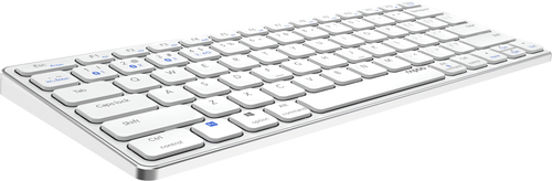 | Allgemeine Daten | | Gewicht in g | 445 | | Tiefe in mm | 115 | | Höhe in mm | 13 | | Breite in mm | 362 | | Farbe | weiß | | Stromversorgung | | Batterietyp/Akkutyp | Lithium-Ionen | | Energie-Versorgung | Akku | | Maus | | Maus | Nein | | Tastatur | | Multimedia Keyboard | Ja | | Touchpad | Nein | | Nummernblock | Ja | | Tastatur-Layout | QWERTZ (deutsch) | | Technik | | Übertragungsprinzip | Bluetooth / WLAN |