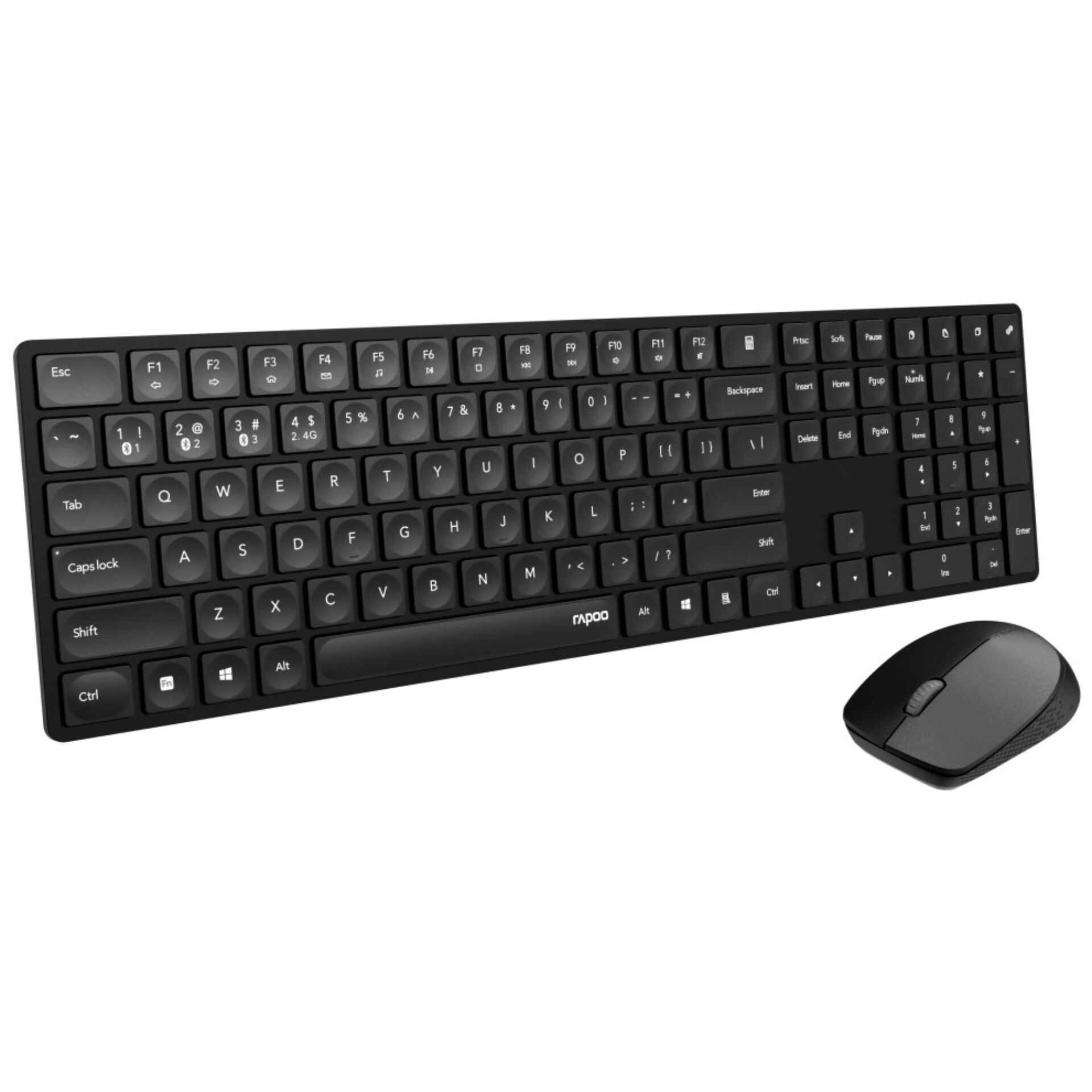 | Allgemeine Daten | | Farbe | schwarz | | Stromversorgung | | Erforderliche Anzahl | 1 / 1 | | Batterietyp/Akkutyp | AA (Mignon) | | Energie-Versorgung | Batterie | | Maus | | Funktionstaste(n) | 5x | | Scrollrad | Ja | | Auflösung umschaltbar | Ja | | Sensor-Auflösung (dpi) | 1600 | | Sensortyp | Optisch | | Maus | Ja | | Tastatur | | Multimedia Keyboard | Ja | | Nummernblock | Ja | | Tastatur-Layout | QWERTZ (deutsch) | | Technik | | Übertragungsprinzip | Bluetooth / Funk | | Produkt-Features Tastaturen PC -kabellos- | | Feature 2 | bluetooth |