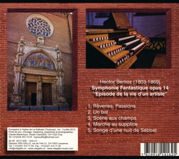 Symphonie fantastique (Episode aus dem Leben eines Künstlers) op. 14a (bearb. für Orfel von Yves Rechsteiner) 01. "1. R?veries - Passions (Tr?ume - Leidenschaften)" 02. "2. Un bal (Ein Ball)" 03. "3. Sc?ne aux champs (Szene auf dem Lande)" 04. "4. Marche au supplice (Gang zum Richtplatz)" 05. "Songe d'une nuit de Sabbat (Traum einer Sabbatnacht)"