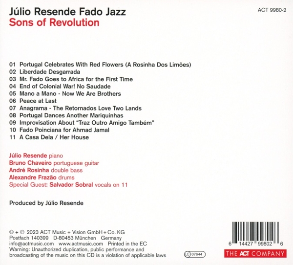 01. Resende, J£lio "Portugal celebrates with red flowers (A rosinha dos limoes)" 02. Resende, J£lio "Liberdade desgarrada" 03. Resende, J£lio "Mr. Fado goes to Africa for the first time" 04. Resende, J£lio "End of colonial war! No saudade" 05. Resende, J£lio "Mano a mano - Now we are brothers" 06. Resende, J£lio "Peace at last" 07. Resende, J£lio "Anagrama - The retornados love two lands" 08. Resende, J£lio "Portugal dances another mariquinhas" 09. Resende, J£lio "Improvisation about "Traz outro amigo tamb?m"" 10. Resende, J£lio "Fado poinciana for Ahmad Jamal" 11. Resende, Julio / Sobral, Salvador "A casa dela / Her house"
