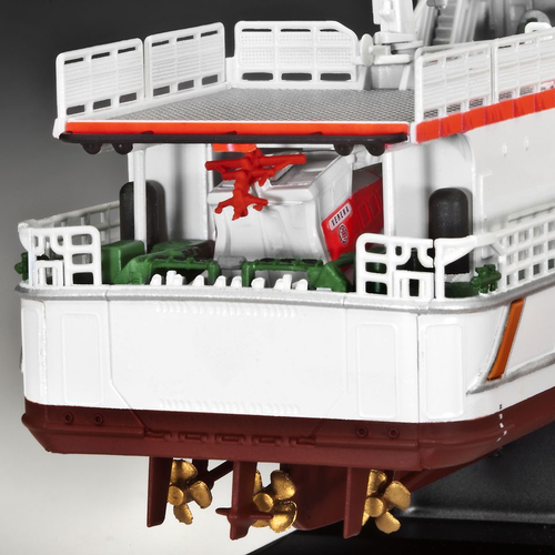 Hermann Marwede is one of the most modern ships of this type in the world. It is the largest Ocean-going rescue ship ever to enter service in Germany. The ship was named in the Summer of 2003 and is stationed on the North Sea Island of Helgoland. It has a maximum speed of 25 knots (46.3 km/h, 28.75 mph) and a maximum range of 3926 km (2438 st. miles). Propulsion is provided by three engines with a total power output of 9250 Bhp. The ship has its own small hospital, a crane, an inflatable boat, fire fighting appliances and a Helicopter Landing Platform on-board. The on-board inshore craft can achieve a speed of 18 knots (21 mph) and also operate in shallow waters. Since its formation in 1865, members of the DGzRS (German Lifeboat Institution) have saved over 76000 people from life-threatening situations. The rescue work of the institution is financed completely from charitable donations. Hauptmerkmale Funktionen Maßstab 1:20 Typ Rettungsboot Bauart Montagesatz Ursprünglicher Modellname DGzRS