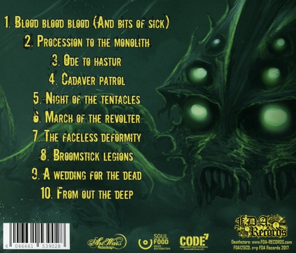 Beschreibung:Artwork: Roberto Toderico, Bass Guitar [Uncredited]: Grotesque Tobias, Design [Logo]: Putrid (4), Drums [Uncredited]: Mutated Martin, Guitar [Uncredited], Vocals [Uncredited]: Rogga Johansson, Layout: ArtWars Mediadesign, Layout: Marc Niederhagemann, Mixed By, Mastered By: Ronnie Björnström, Music By [All Music By], Lyrics By [All Lyrics By]: Revolting, Photography By [Photos By]: Kapten Jolle, Labelcode FDAZ125.2 (FDA125CD), Copyright (c) FDA Records, Phonographic Copyright (p) FDA Records, Manufactured By www.euroduplication.de, Distributed By Soulfood Music Distribution, Distributed By Code 7, Designed At Art Wars Mediadesign, Recorded At The Rotpit, Mixed At Enhanced Audio Productions, Mastered At Enhanced Audio Productions