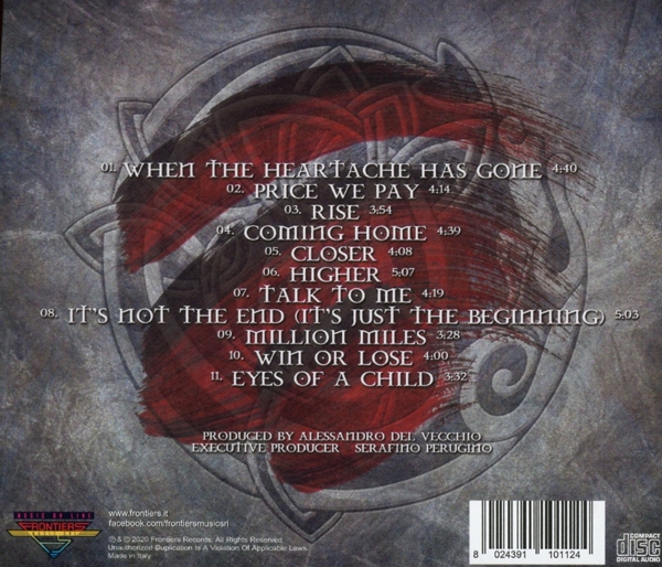 01. "When the heartache has gone" 02. "Price we pay" 03. "Rise" 04. "Coming home" 05. "Closer" 06. "Higher" 07. "Talk to me" 08. "It's not the end (It's just the beginning)" 09. "Million miles" 10. "Win or lose" 11. "Eyes of a child"