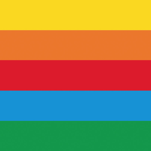 Blau, Grün, Orange, Rot, Gelb