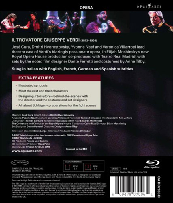 José Cura (Manrico),Dmitri Hvorostovsky (Count di Luna),Yvonne Naef (Azucena),Verónica Vilarroel |