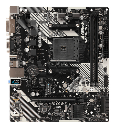 | Beschreibung: | Entdecken Sie das innovative ASRock B450M-HDV R4.0 Mainboard, das ultimative Leistung und Zuverlässigkeit bietet. Erleben Sie atemberaubende Geschwindigkeiten mit der Ultra M.2-Schnittstelle und maximale Speicherleistung mit der AMD StoreMI Technologie. Das hochdichte Glasfasergewebe-PCB und das saphirschwarze Design sorgen nicht nur für einen robusten Schutz, sondern verleihen auch eine ansprechende Ästhetik. Genießen Sie die Flexibilität von Triple Monitor und die Brillanz von 4K x 2K Auflösung. Mit 1x PCIe x16AM4µATXAMD StoreMI Ein leistungsstarkes Tool, das die Geschwindigkeit Ihrer SSD mit der Kapazität Ihrer Festplatte kombiniert und so ein einzelnes, schnelles und einfach zu verwaltendes Laufwerk erschafft. SSDs sind schnell, aber teuer und bieten nur eine minimale Kapazität. Mechanische Festplatten haben eine große Kapazität zu einem niedrigen Preis, sind aber viel langsamer als eine SSD. Die Technologie AMD StoreMI "kombiniert" diese beiden Speicherarten in einem einzigen Laufwerk und verschiebt die Daten, auf die Sie am häufigsten zugreifen, automatisch auf die SSD. So erhalten Sie das Beste aus beiden Welten: Die SSD-Reaktionsfähigkeit und die Kapazität mechanischer Festplatten. Sie können auch bis zu zwei Gigabyte RAM als Last-Level-Cache für ultraschnelle Daten verwenden. Ultra M.2 32 Gb/s (PCIe Gen3 x4 & SATA3) Der Anschluss Ultra M.2 mit PCIe-Gen3-x4-Anbindung treibt die Transferrate auf bis zu 32 Gb/s. Darüber hinaus unterstützt er M.2-Module für SATA3 mit 6 Gb/s und ist kompatibel zumWeee-Nr.: 54978142Das ASRock B450M-HDV R4.0 ist ein Micro-ATX-Mainboard für AMD-Ryzen-Prozessoren und bietet eine hervorragende Kombination aus Leistung und Preis-Leistungs-Verhältnis ? ideal für den Einsatz im Homeoffice oder als Basis für einen Gaming-PC der Einstiegsklasse geeignet. Ausgestattet mit dem AMD-B450-Chipsatz unterstützt es die erste bis dritte Generation von Ryzen-CPUs sowie Athlon-Prozessoren mit integrierter Radeon-Vega-Grafikunterstützung. Das Board verfügt über zwei DDR4-Speicherbänke (bis zu 32 GB), einen PCIe-3.0-x16-Steckplatz für Grafikkarten sowie M.-2-Unterstützung für schnelle SSDs und vier SATA3-Anschlüsse zur Erweiterung des Speicherplatzes; HDMI-, DVI-D- und VGA-Ausgänge sorgen zudem für flexible Monitoranbindungsmöglichkeiten; USB-3.1-(Gen1)-Ports ermöglichen schnellen Datentransfer; Realtek-Gigabit-LAN sorgt zusammen mit hochwertiger Audioausgabe durch ELNA-Kondensatoren stets für stabile Netzwerkverbindungen und klaren Sound.
