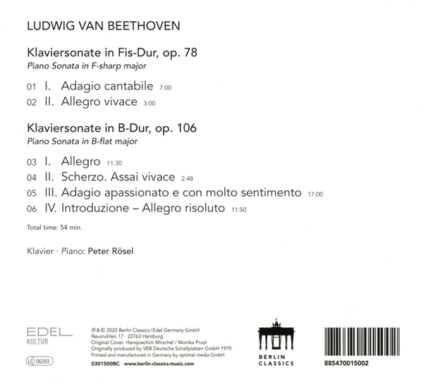 Beschreibung:The opportunity to celebrate, in 2020, the 250th birthday of Ludwig van Beethoven alongside the 30th anniversary of German reunification is akin to a gift for a label that has been instrumental in preserving the recording heritage of the GDR, offering as it does the opportunity for a retrospective view and assessment of the past. This series with 10 new editions from the archive of ETERNA recordings includes audio productions from the early days of the label as well as later productions from the late 80s. Partly remastered from the original tapes and provided with the original covers, these historic-legendary recordings shine in new glamour. The present volume presents two of Beethoven's piano sonatas performed by Peter Rosel., Runningtime: 00:00:00, Composed By: Ludwig Van Beethoven, Piano: Peter Rösel, Labelcode BLN301500.2 (0301500BC, 0301500BC), Phonographic Copyright (p) Berlin Classics, Copyright (c) Berlin Classics, Phonographic Copyright (p) Edel:Kultur, Copyright (c) Edel:Kultur