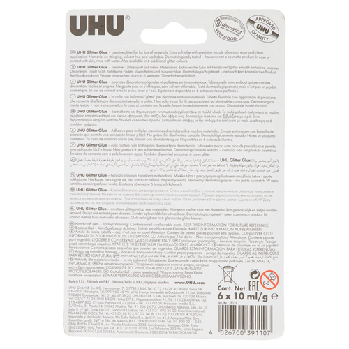 Beschreibung:Hauptmerkmale Funktionen Werkstoff Trocken Klebertyp Klebestift Inhalt 10 ml Für Materialien geeignet Pappe, Stoff, Glas, Papier, Kunststoff, Holz Glitter Ja Farbe des Glitters Blau, Grün, Orange, Pink, Violett, Gelb Trocknungszeit 12 h Lösemittelfrei Ja Abwaschbar Ja Dermatologisch getestet Ja Logistikdaten Menge pro Versandkarton 12 Stück(e) Verpackungsinhalt Menge pro Packung 6 Stück(e) Anzahl der Pakete 1 Verpackungsinformation Verpackungsart Sichtverpackung