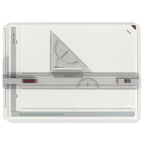 Die ROTRING Zeichenplatte rapid A3 mit Transportverpackung ist ein hochwertiges Zeichenwerkzeug für präzises und komfortables Arbeiten. Hergestellt vom deutschen Traditionsunternehmen Rotring ? bekannt für seine Kompetenz im Bereich technisches Zeichnen seit 1928 ? überzeugt dieses Produkt durch eine robuste Bauweise und benutzerfreundliche Details: Ergonomisches Design mit rutschfesten Füßen, präzise Parallel-Zeichenschiene mit Stop-and-Go-Mechanismus sowie magnetische Klemmleisten und Papierführungen sorgen für exakte Ergebnisse auf DIN-A3-Papierformaten. Dank des leichten und dennoch stabilen Materials eignet sich die Platte perfekt für Studierende sowie Architekten oder Ingenieure unterwegs; die praktische Transportverpackung schützt das Gerät zuverlässig beim Transport.