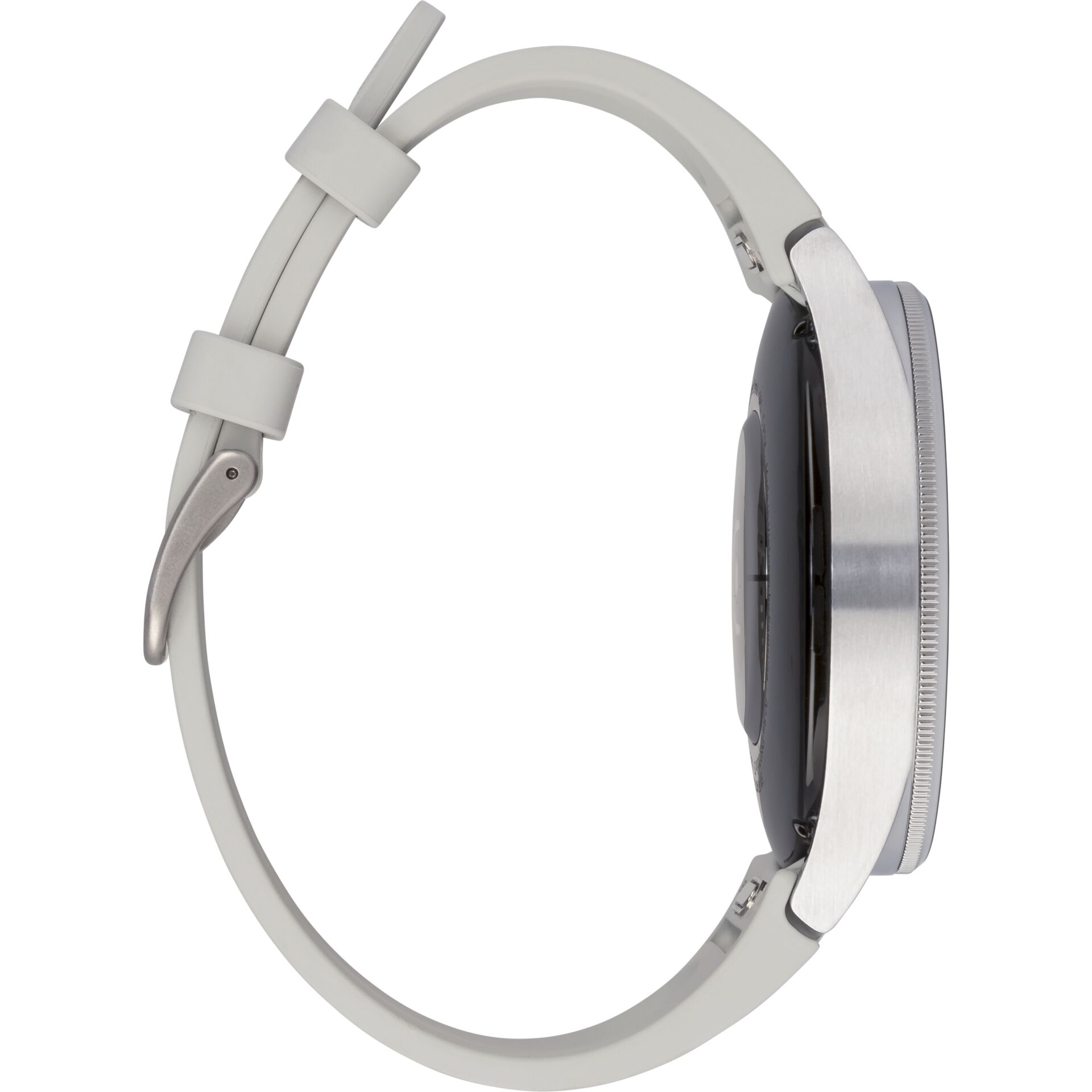 | Armbandgröße | | XL | Ja | | L | Ja | | M | Ja | | S | Nein | | Allgemeine Daten | | Gewicht in g | 59,0 | | Tiefe in mm | 10,9 | | Höhe in mm | 46,5 | | Breite in mm | 46,5 | | Farbe Gehäuse | silber | | Farbe Armband | silber | | Material Gehäuse | Edelstahl | | Material Armband | Silikon | | Energie-Versorgung | | Max. Betriebszeit (Tage) | 1,6 | | Max. Betriebszeit (Std.) | 40 | | Akkukapazität (mAh) | 300 | | Erforderliche Anzahl Batterien / Akkus | 1 | | Batterietyp/Akkutyp | Lithium-Ionen | | Energie-Versorgung | Akku | | Gehäuse Eigenschaften | | Schutzart (IP Code) | IP68 | | Wasserschutz | 5 bar ? 5 atm (? 50 m) | | Staubschutz | Ja | | Gehäusehöhe (mm) | 46,5 | | Gehäusebreite (mm) | 46,5 | | Speicher | | Interner Speicher (GB) | 16 | | Prozessor(en) | | RAM/Arbeitsspeicher in GB | 2 | | Taktfrequenz in GHz | 1,4 | | Prozessor(en)kerne | 2 (Dual Core) | | Funktionen | | Weckfunktion | Ja | | Notruffunktion | Ja | | Sturzerkennung | Ja | | Schrittzähler | Ja | | Schlafüberwachung/-protokollierung | Ja | | Kompass | Ja | | Kalorienverbrauchsmessung | Ja | | Herzfrequenzmessung | Ja | | Aktivitäts-/Inaktivitätsanzeige | Ja | | Ausstattung(en) | | Mikrofon | Ja | | Lautsprecher | Ja | | GPS-Empfänger | Ja | | Kompatibel mit | ab Android 10 | | Display/Anzeige | | Auflösung in Pixel | 480 x 480 | | Touchscreen | Ja | | Display/Anzeigediagonale (Zoll) | 1,5 | | Display/Anzeigediagonale (cm) | 3,73 | | Farbdisplay | Ja | | Anzeige | digital | | Display/Anzeige-Art | SAMOLED | | Konnektivität(en) | | W-LAN-Standards | IEEE 802.11b/g/n | | W-LAN | Ja | | NFC | Ja | | Typ(en) | | Typ(en) | Smartwatch | | Produkt-Features Wearables | | Feature 6 | android | | Feature 3 | nfc |