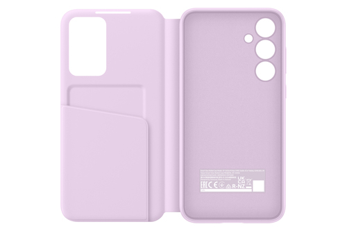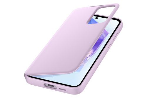rnFunktional durch DesignMit dem schicken Smart View Wallet Case kannst du direkt auf das Display deines Galaxy A55 5G zugreifen, ohne das Case öffnen zu müssen. In den Farben Black, White und Lavender erhältlich kombiniert das Case Schutz, Style und Komfort.Einfaches Antippen reicht ausTippe auf das Sichtfenster, um wichtige Funktionen schnell bedienen zu können, z. B. um einen Anruf anzunehmen oder die Musik zu stoppen, während das Case geschlossen ist.Mit deinem Smartphone Wichtiges sicher aufbewahrenStecke deine häufig genutzten Karten einfach in das Kartenfach deines Smart View Wallet Case, damit sie griffbereit und sicher verstaut sind.rnrn Hauptmerkmale rn rn Merkmale rn Maximale Bildschirmgröße 16,8 cm (6.6") rn Etui-Typ Geldbörsenhülle rn Produktfarbe Lavendel rn Markenkompatibilität Samsung rn Kompatibilität Galaxy A55 5G rn Muster Kein Muster rn Oberflächenfärbung Monochromatisch rn Kartentasche Ja rn Integriertes interaktives Fenster Ja rn rn
