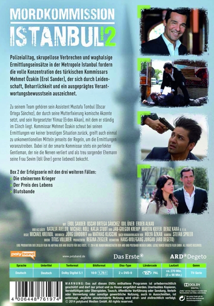| Beschreibung: | Polizeialltag, skrupellose Verbrechen und waghalsige Ermittlungseinsätze in der Metropole Istanbul fordern die volle Konzentration des türkischen Kommissars Mehmet Özakin (Erol Sander), der sich durch Leidenschaft, Beharrlichkeit und ein ausgeprägtes Verantwortungsbewusstsein auszeichnet. Zu seinem Team gehören sein Assistent Mustafa Tombul (Oscar Ortega Sanchez) und sein Vorgesetzter Yilmaz (Erden Alkan). Der Kommissar scheut bei seinen Ermittlungen vor keiner brenzligen Situation zurück, greift auch einmal zu unkonventionellen Mitteln jenseits der Regeln, um die Ermittlungen voranzutreiben.