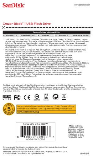 Technisch überzeugt das Laufwerk durch Plug-and-play-Funktionalität ohne zusätzliche Softwareinstallation auf gängigen Betriebssystemen wie Windows oder Mac OS X sowie ein geringes Gewicht bei gleichzeitig robuster Verarbeitung aus hochwertigen Materialien ? typisch für die Innovationskraft von Sandisk als weltweit führender Anbieter digitaler Speicherlösungen.