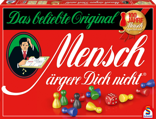Beschreibung: MENSCH ÄRGERE DICH NICHT in der tollen Jubiläumsausgabe mit Figuren und Würfeln aus Holz und dem doppelseitigen Spielbrett. Für 2 bis 6 Spieler. Spieldauer ca. 30 Minuten. Ab 6 Jahren.
