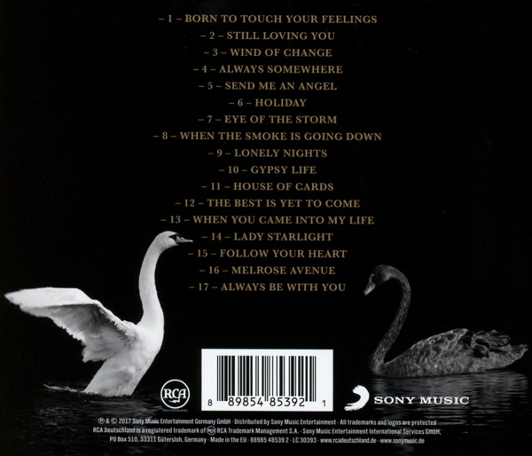 01. Scorpions "Born to Touch Your Feelings (Studio Edit)" 02. Scorpions "Still Loving You" 03. Scorpions "Wind Of Change" 04. Scorpions "Always Somewhere" 05. Scorpions "Send Me an Angel (Acoustic Version 2017)" 06. Scorpions "Holiday" 07. Scorpions "Eye of the Storm (Radio Edit)" 08. Scorpions "When The Smoke Is Going Down" 09. Scorpions "Lonely Nights" 10. Scorpions "Gypsy Life" 11. Scorpions "House of Cards (Single Edit)" 12. Scorpions / Meine, Klaus / Jabs, Matthias "The Best Is Yet To Come" 13. Scorpions "When You Came into My Life (Studio Edit)" 14. Scorpions "Lady starlight" 15. Scorpions "Follow Your Heart" 16. Scorpions "Melrose Avenue" 17. Scorpions "Always Be with You"