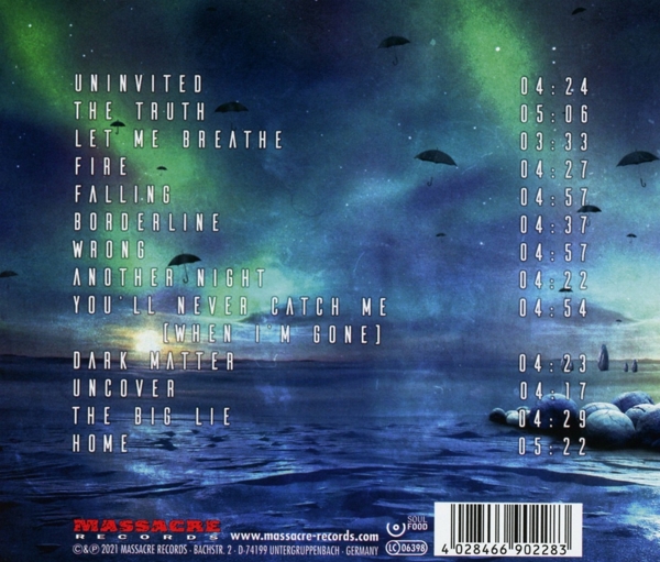 01. "Uninvited" 02. "The truth" 03. "Let me breathe" 04. "Fire" 05. "Falling" 06. "Borderline" 07. "Wrong" 08. "Another night" 09. "You'll never catch me (when I'm gone)" 10. "Dark matter" 11. "Uncover" 12. "The big lie" 13. "Home"
