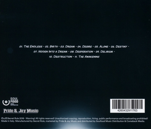 01. "The endless" 02. "Birth" 03. "Dream" 04. "Desire" 05. "Alone" 06. "Destiny" 07. "Hidden into a dream" 08. "Desperation" 09. "Delirium" 10. "Destruction" 11. "The awakening"