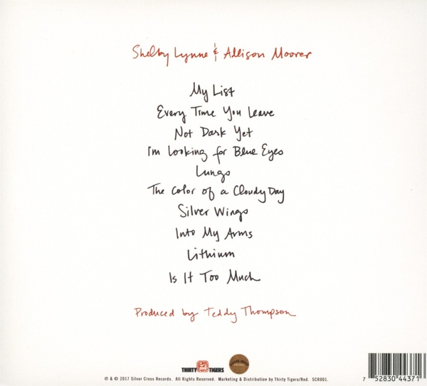 Beschreibung:2017 release. Not Dark Yet was recorded in Los Angeles in the summer of 2016. The album provides a potent look at the sisters' individual and collective artistry through eclectic song choices from writers ranging from the Louvin Brothers, Nick Cave, Kurt Cobain, and back to Jessie Colter. Shelby and Allison wrap their arms around the past, plant their feet in the present, and nod toward what's around the bend with a co-written 'Is It Too Much' to close out the ten-song set., Runningtime: 00:00:00, Art Direction: Fetzer Design, Engineer: Scott Campbell, Engineer [Assisted By]: Russ Allen (3), Mastered By: Pete Lyman, Mixed By: Mark Howard, Photography By: Sarah Ellison Lewis, Producer: Teddy Thompson, Acoustic Guitar: Allison Moorer, Backing Vocals: Teddy Thompson, Bass: Taras Prodaniuk, Drums, Percussion: Michael Jerome, Electric Guitar: Doug Pettibone, Electric Guitar: Val McCallum, Piano, Organ: Benmont Tench, Vocals: Allison Moorer, Vocals: Shelby Lynne, Written-By: Brandon Flowers, Written-By: Dave Keuning, Written-By: Mark Stoermer, Written-By: Ronnie Vannucci, Acoustic Guitar: Doug Pettibone, Acoustic Guitar: Teddy Thompson, Bass: Davey Faragher, Electric Guitar: Doug Pettibone, Piano, Keyboards: Benmont Tench, Vocals: Allison Moorer, Vocals: Shelby Lynne, Written-By: Charlie Louvin, Written-By: Ira Louvin, Bass: Taras Prodaniuk, Drums, Percussion: Michael Jerome, Electric Guitar: Doug Pettibone, Piano: Allison Moorer, Piano, Organ, Electric Piano [Wurlitzer]: Benmont Tench, Vocals: Allison Moorer, Vocals: Shelby Lynne, Written-By: Bob Dylan, Acoustic Guitar: Allison Moorer, Acoustic Guitar: Shelby Lynne, Drums, Bass: Teddy Thompson, Electric Guitar, Pedal Steel Guitar: Ben Peeler, Piano: Benmont Tench, Vocals: Allison Moorer, Vocals: Shelby Lynne, Written-By: Jessi Colter, Acoustic Guitar: Val McCallum, Bass: Davey Faragher, Performer [Space Trip]: Mark Howard, Piano: Erik Deutsch, Vocals: Allison Moorer, Vocals: Shelby Lynne, Written-By: Townes Van Zandt, Acoustic Guitar: Val McCallum, Bass: Davey Faragher, Drums, Percussion: Don Heffington, Piano, Organ: Erik Deutsch, Vocals: Allison Moorer, Vocals: Shelby Lynne, Written-By: Amanda Shires, Written-By: Jason Isbell, Bass: Taras Prodaniuk, Drums, Percussion: Michael Jerome, Electric Guitar: Doug Pettibone, Electric Guitar: Val McCallum, Pedal Steel Guitar: Ben Peeler, Piano, Organ: Benmont Tench, Vocals: Allison Moorer, Vocals: Shelby Lynne, Written-By: Merle Haggard, Bass: Taras Prodaniuk, Drums, Percussion: Michael Jerome, Electric Guitar: Doug Pettibone, Piano: Benmont Tench, Vocals: Allison Moorer, Vocals: Shelby Lynne, Written-By: Nick Cave, Acoustic Guitar: Doug Pettibone, Bass: Taras Prodaniuk, Drums, Percussion: Michael Jerome, Electric Guitar: Ben Peeler, Electric Guitar: Val McCallum, Piano: Benmont Tench, Vocals: Allison Moorer, Vocals: Shelby Lynne, Written-By: Kurt Cobain, Bass: Taras Prodaniuk, Drums, Percussion: Michael Jerome, Electric Guitar: Doug Pettibone, Piano: Allison Moorer, Piano: Benmont Tench, Vocals: Allison Moorer, Vocals: Shelby Lynne, Written-By: Allison Moorer, Written-By: Shelby Lynne, Labelcode SVCS304437.2 (SCR001), Phonographic Copyright (p) Silver Cross Records (3), Copyright (c) Silver Cross Records (3), Marketed By Thirty Tigers, Distributed By Thirty Tigers, Marketed By RED (2), Distributed By RED (2), Published By Universal/Momentum Music 3 Ltd., Published By Sony/ATV Acuff Rose Music, Published By Special Rider Music, Published By Universal - Songs Of Polygram International, Inc., Published By JTVZ Music, Published By Wixen, Published By Katie Bell Music, Published By Will Van Zandt Publishing, Published By Fame