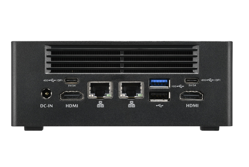 Technische Details | | Konformitätsbescheinigungen | BSMI, CB, CE, Eidgenössische Kommunikationskommission (FCC), RoHS, cTUVus | Speichermedium | | Installierte Speichertreiber | Nein | | Unterstützte Speicherlaufwerke | SSD | | unterstützte Speicherlaufwerksgrößen | M.2 " | | SSD-Formfaktor | M.2 | | Speicherlaufwerk Schnittstelle | PCI Express | | NVMe | Ja | | Integrierter Kartenleser | Ja | | Kompatible Speicherkarten | SD | Speicher | | Installierter interner Speicher | Nein | | Arbeitsspeicher Typ | SO-DIMM | | Anzahl der Speichersteckplätze | 2 | | RAM-Speicher maximal | 64 GB | | Unterstützte Arbeitsspeichergeschwindigkeit | 5600 MHz | | Unterstützte Arbeitsspeicher | DDR5-SDRAM | | Speicherkanäle | Zweikanalig | | Speicherspannung | 1.1 V | | Ohne ECC | Ja | Software | | Unterstützt Windows-Betriebssysteme | Windows 11 x64 | | Unterstützte Linux-Betriebssysteme | Ja | Prozessor(en) | | Eingebauter Prozessor | Ja | | Prozessorhersteller | AMD | | Prozessorfamilie | AMD Ryzen™ 7 | | Prozessorgeneration | AMD Ryzen 8000 Series | | Prozessor(en) | 8845HS | | Anzahl Prozessorkerne | 8 | | Prozessor-Threads | 16 | | Prozessor Boost-Frequenz | 5,1 GHz | | Prozessor-Taktfrequenz | 3,8 GHz | | Pufferspeicher L2 | 8 MB | | Pufferspeicher L3 | 16 MB | | Thermal Design Power (TDP) | 45 W | Netzwerk | | Ethernet/LAN | Ja | | W-LAN | Nein | | LAN-Controller | Realtek RTL8125B | Nachhaltigkeit | | Nachhaltigkeitszertifikate | ENERGY STAR, ErP | Logistikdaten | | Warentarifnummer (HS) | 84714900 | Lieferumfang | | Netzkabel enthalten | Ja | | AC-Netzadapter | Ja | | Schnellstartübersicht | Ja | Leistungen | | BIOS-Typ | UEFI AMI | | Trusted Platform Module (TPM) | Ja | | Trusted Platform Module (TPM) Version | 2.0 | | Audio-Chip | Realtek ALC269 | Grafik | | Eingebaute Grafikadapter | Ja | | Grafikkarte-Familie | AMD | | Eingebautes Grafikkartenmodell | AMD Radeon 780M | | Anzahl der Display unterstützt | 4 | Gewicht und Abmessungen | | Breite | 132 mm | | Tiefe | 143 mm | | Höhe | 55 mm | | Gewicht | 800 g | | Paketgewicht | 1,7 kg | Energie | | Netzteiltyp | Externer AC-Adapter | | Stromversorgung | 120 W | | Anzahl von Stromversorgungseinheiten | 1 | | AC Eingangsspannung | 100 - 240 V | | AC Eingangsfrequenz | 50/60 Hz | | Netzteil Ausgangsspannung | 19 V | | AC-Adapter Ausgangssstrom | 6,32 A | Design | | Gehäusetyp | 1L Größe PC | | Produktfarbe | Schwarz | | Kühlung | Aktiv | | Produkttyp | Mini-PC Barebone | | LED-Anzeigen | Leistung | | Gehäusematerial | Kunststoff | | Kabelsperre-Slot | Ja | | Slot-Typ Kabelsperre | Kensington | | VESA-Halterung | Ja | | Panel-Montage-Schnittstelle | 75 x 75,100 x 100 mm | Betriebsbedingungen | | Betriebstemperatur | 0 - 40 °C | | Relative Luftfeuchtigkeit in Betrieb | 10 - 90 % | Audio | | Eingebaute Lautsprecher | Nein | Anschlüsse und Schnittstellen | | Anzahl USB 2.0 Anschlüsse | 1 | | USB 3.2 Gen 1 (3.1 Gen 1) Anzahl der Anschlüsse vom Typ A | 0 | | Anzahl HDMI-Anschlüsse | 2 | | Anzahl Ethernet-LAN-Anschlüsse (RJ-45) | 2 | | USB 3.2 Gen 2 (3.1 Gen 2) Anzahl der Anschlüsse vom Typ A | 5 | | Anzahl USB4 Gen 2×2-Ports | 2 | | HDMI-Version | 2.0 | | Kombinierter Kopfhörer-/Mikrofon-Anschluss | Ja |