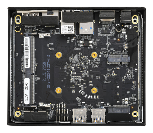 Zertifikate | | Konformitätsbescheinigungen | BSMI, CB, CE, Eidgenössische Kommunikationskommission (FCC), RCM, RoHS, UKCA, VCCI, cTUVus | Speichermedium | | Gesamtspeicherkapazität | 128 GB | | Optisches Laufwerk - Typ | Nein | | Speichermedien | SSD | | Anzahl der installierten Speicherlaufwerke | 1 | | Gesamtkapazität der SSDs | 128 GB | | Anzahl SSD installiert | 1 | | SSD Speicherkapazität | 128 GB | | SSD Schnittstelle | SATA III | | SSD-Formfaktor | M.2 | | M.2 SSD- Größe | 2280 (22 x 80 mm) | Speicher | | Speicherkapazität | 8 GB | | RAM-Speicher maximal | 16 GB | | Interner Speichertyp | DDR4-SDRAM | | Speicherlayout | 1 x 8 GB | | Speicherkartensteckplätze | 1x SO-DIMM | | Speicherkanäle | Einfach-Kanal | | Speicherdatenübertragungsrate | 3200 MT/s | Software | | Installiertes Betriebssystem | Windows 11 Pro | | Betriebssystemarchitektur | 64-Bit | Prozessor(en) | | Prozessorfamilie | Intel® N | | Prozessorhersteller | Intel | | Prozessor(en) | N100 | | Anzahl Prozessorkerne | 4 | | Prozessor-Threads | 4 | | Prozessor Boost-Frequenz | 3,4 GHz | | Prozessor-Cache | 6 MB | | Prozessor Cache Typ | Smart Cache | Netzwerk | | Ethernet/LAN | Ja | | W-LAN | Ja | | Ethernet LAN Datentransferraten | 10,100,1000 Mbit/s | | Top WLAN-Standard | Wi-Fi 6 (802.11ax) | | WLAN-Standards | 802.11a, 802.11b, 802.11g, Wi-Fi 4 (802.11n), Wi-Fi 5 (802.11ac), Wi-Fi 6 (802.11ax) | | Hersteller von WLAN-Controllern | Intel | | WLAN-Controllermodell | Intel Wi-Fi 6 AX200 | | Antennen-Design | Intern | | Bluetooth | Ja | | Bluetooth-Version | 5.2 | Nachhaltigkeit | | Nachhaltigkeitszertifikate | ENERGY STAR, ErP | Logistikdaten | | Warentarifnummer (HS) | 84714900 | Leistungen | | Produkttyp | Mini-PC | | Marktpositionierung | Business | | BIOS-Typ | UEFI AMI | | Trusted Platform Module (TPM) | Ja | | Trusted Platform Module (TPM) Version | 2.0 | Grafik | | Separater Grafikadapter | Nein | | Eingebaute Grafikadapter | Ja | | Separates Grafikkartenmodell | Nicht verfügbar | | Eingebautes Grafikkartenmodell | Intel® UHD Graphics | | Hersteller der eingebauten GPU | Intel | | On-Board-Grafikadapterfamilie | Intel® UHD Graphics | Gewicht und Abmessungen | | Breite | 115 mm | | Tiefe | 135 mm | | Höhe | 39 mm | | Gewicht | 600 g | | Paketgewicht | 1,5 kg | Energie | | Stromversorgung | 65 W | | Stromversorgung - Eingang Spannung | 100 - 240 V | | Stromversorgung - Eingangsfrequenz | 50/60 Hz | Design | | Gehäusetyp | Slim PC | | Produktfarbe | Schwarz | | Volumen (l) | 0,6 l | | VESA-Halterung | Ja | | Kabelsperre-Slot | Ja | | Slot-Typ Kabelsperre | Kensington | | Gehäusematerial | Kunststoff | Bildschirm | | Anzeige enthalten | Nein | Betriebsbedingungen | | Betriebstemperatur | 0 - 40 °C | | Relative Luftfeuchtigkeit in Betrieb | 10 - 90 % | Anschlüsse und Schnittstellen | | Anzahl USB 2.0 Anschlüsse | 2 | | USB 3.2 Gen 1 (3.1 Gen 1) Anzahl der Anschlüsse vom Typ A | 0 | | USB 3.2 Gen 1 (3.1 Gen 1) Anzahl der Anschlüsse vom Typ C | 0 | | USB 3.2 Gen 2 (3.1 Gen 2) Anzahl der Anschlüsse vom Typ A | 4 | | USB 3.2 Gen 2 (3.1 Gen 2) Anzahl der Anschlüsse vom Typ C | 0 | | Anzahl Thunderbolt 3 Anschlüsse | 0 | | Anzahl HDMI-Anschlüsse | 1 | | HDMI-Version | 2.0 | | Anzahl DisplayPort Anschlüsse | 1 | | DisplayPorts-Version | 1.4 | | Anzahl Ethernet-LAN-Anschlüsse (RJ-45) | 1 | | Mikrofon-Eingang | Ja | | Kopfhörerausgänge | 1 | | Gleichstrom-Anschluss (DC) | Ja |
