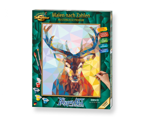 Beschreibung:''Polygon-Art'' - Bilder wie Diamanten (Hirsch) Mit der ''Polygon-Maltechnik'' geht SCHIPPER Arts & Crafts moderne Wege: Die Motive werden durch geometrische Flächen dargestellt und die charakteristischen Merkmale mit Farbe herausgearbeitet. Wie ein Rohdiamant durch seinen Schliff Schönheit und Strahlkraft entfaltet, gewinnt auch das Tierporträt ''Hirsch'' durch die geometrisch abstrahierte Umsetzung markante Züge. Gerade die hart nebeneinandergesetzte Farbverfremdung, spiegelt den Charakter des Tieres wider und die leuchtenden Farben erwecken das Motiv zum Leben. ''Polygon-Art'' ist eine wundervolle Bereicherung der darstellenden Kunst und eine brillante Herausforderung für jeden Hobbymaler. Bildformat 40 x 50 cm.
