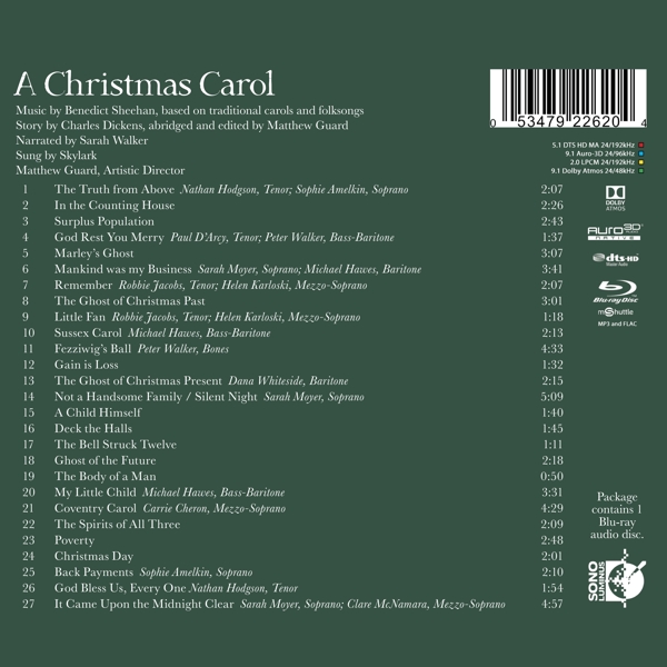 A Christmas Carol 01. "The truth from above" 02. "In the counting house" 03. "Surplus population" 04. "God rest you merry" 05. "Marley's ghost" 06. "Mankind was my business" 07. "Remembe" 08. "The ghost of Christmas past" 09. "Little fan" 10. "Sussex carol" 11. "Fezziwig's ball" 12. "Gain is loss" 13. "The ghost of Christmas present" 14. "Not a handsome family - Silent night" 15. "A child himself" 16. "Deck the halls" 17. "The bell struck twelve" 18. "Ghost of the future" 19. "The body of a man" 20. "My little child" 21. "Coventry carol" 22. "The spirits of all three" 23. "Poverty" 24. "Christmas Day" 25. "Back payments" 26. "God bless us, every one" 27. "It came upon the midnight clear"