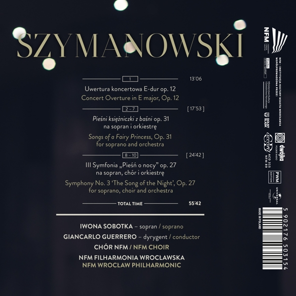 01. Guerrero, Giancarlo "Konzert-Ouvertüre op. 12 (2. Fassung)" Lieder einer M?rchenprinzessin op. 31 für Sopran und Orchester 02. Sobotka, Iwona "Nr. 1 Einsamer Mond" 03. Sobotka, Iwona "Nr. 2 Nachtigall" 04. Sobotka, Iwona "Nr. 3 Goldene Pantoffeln" 05. Sobotka, Iwona "Nr. 4 Tanz" 06. Sobotka, Iwona "Nr. 5 Lied der Welle" 07. Sobotka, Iwona "Nr. 6 Fest" Sinfonie Nr. 3 op. 27 "Das Lied von der Nacht" 08. Sobotka, Iwona "1. Moderato assai" 09. Sobotka, Iwona "2. Vivace, scherzando" 10. Sobotka, Iwona "3. Largo"