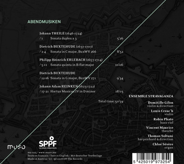 | Beschreibung: | Runningtime: 00:00:00, Bass Viol: Robin Pharo, Design [Cover]: Steve Estvanik, Ensemble: Ensemble Stravaganza, Graphic Design: Aurélie Commerce, Graphic Design: Michel De Backer, Harpsichord, Directed By: Thomas Soltani, Liner Notes: Gabrielle Oliveira Guyon, Liner Notes [Translation By]: Gilbert Bofill i Ball, Liner Notes [Translation By]: Jeremy Drake (2), Organ: Chloé Sévère, Photography By: Natacha Colmez-Collard, Producer, Engineer, Edited By: Olivier Rosset (2), Theorbo: Vincent Maurice, Violin: Louis Creac'h, Violin, Directed By: Domitille Gilon, Composed By: Johann Theile, Composed By: Dieterich Buxtehude, Composed By: Philipp Heinrich Erlebach, Composed By: Dieterich Buxtehude, Composed By: Johann Adam Reincken, Labelcode MU-025 (MU 025), Copyright (c) Off The Records (4), Phonographic Copyright (p) Off The Records (4), Recorded At Church Of Bon Secours, Paris |