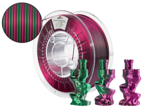 Spectrum Magic SILK PLA ist ein innovatives 3D-Druckfilament, das Ihre Projekte mit seinem unglaublichen Farbeffekt in wahre Kunstwerke verwandelt. Dank der Koextrusionstechnologie kombiniert Magic SILK PLA zwei Farben zusammen und erzeugt atemberaubende Farbverläufe und dynamische Lichteffekte. Jeder Druck, der mit diesem Filament hergestellt wird, schimmert in verschied