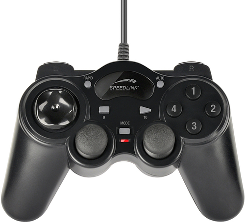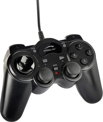 | | Beschreibung: | SPEEDLINK SL-6515-BK THUNDERSTRIKE - Game Pad - 12 Tasten - kabelgebunden - Schwarz - für PC Gruppe Game Controller Hersteller Jöllenbeck Hersteller Art. Nr. SL-6515-BK EAN/UPC 4027301165159 Produktbeschreibung: SPEEDLINK SL-6515-BK THUNDERSTRIKE - Game Pad - kabelgebunden Produkttyp Game Pad Anschlusstechnik Kabelgebunden Anzahl Tasten 12 Steuerungen Zwei analoge Sticks, 4 Schultertasten, 8-Weg-Steuerkreuz Leistungsmerkmale Automatisches Feuern, Schnelles Feuern, DirectInput-kompatibel Farbe Schwarz Entwickelt für PC Details: Allgemein Produkttyp Game Pad Anschlusstechnik Kabelgebunden Anzahl Tasten 12 Steuerungen Zwei analoge Sticks, 4 Schultertasten, 8-Weg-Steuerkreuz Schnittstelle USB Leistungsmerkmale Automatisches Feuern, Schnelles Feuern, DirectInput-kompatibel Farbe Schwarz Konnektivität Schnittstellen 1 x USB - 4-polig USB Typ A Verschiedenes Kabellänge 1.7 m Kennzeichnung Plug and Play Informationen zur Kompatibilität Entwickelt für PCschwarz, Retail-Kabel-12 Tasten-USBManufacturer-Nr.: SL-6515-BKDas THUNDERSTRIKE Gamepad sorgt dank treiberloser Installation und seines übersichtlichen Layouts für unkomplizierten Spielspaß am PC. Acht digitale Tasten stehen bereit für actionreiche Spiele, vier bequem erreichbare Schultertasten sowie zwei Analogsticks erlauben schnelle und präzise Kommandos. Mit einem Knopfdruck schalten Sie praktisches Schnell- und sogar Autofeuer zu für noch mehr Komfort und einen taktischen Vorteil im Spiel."Gamepad THUNDERSTRIKE, für PC, USB, schwarz retail" von Sl-6515-bk aus der Kategorie Gamepads & Lenkräder Die Übertragungstechnik erfolgt bei diesem Produkt Verkabelt. Das Produkt hat die Farbe Schwarz. |  | | Herstellernummer: |