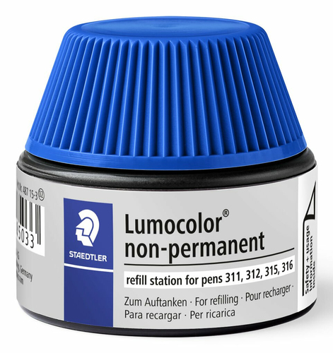 Mit dem Kauf der Lumocolor non-perm Nachfülltinte Blau leistet der Kunde selbst einen aktiven Beitrag im Sinne der Nachhaltigkeit. Jeder nachgefüllte Marker bedeutet weniger Materialverbrauch und weniger Müll im Vergleich zum Neukauf eines kompletten Stiftes. So verbindet dieses Produkt praktische Vorteile - wie Kostenersparnis, Verfügbarkeit und komfortables Handling - mit einem bewussteren, umweltfreundlicheren Umgang mit Schreib- und Markierutensilien. |  | | Herstellernummer: |