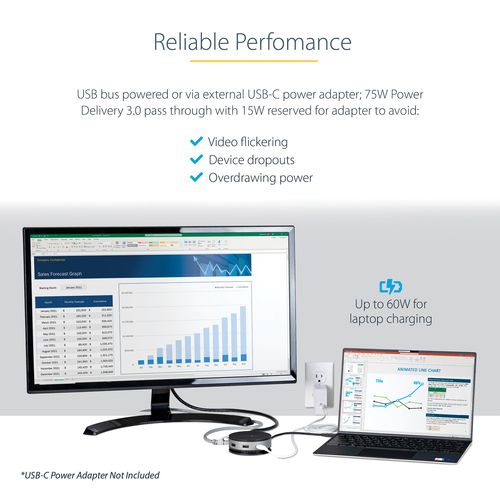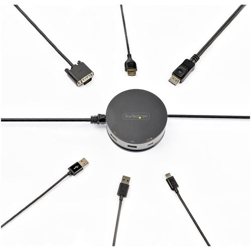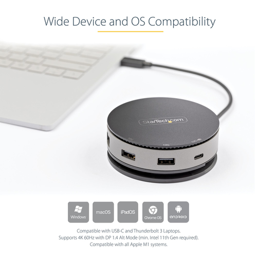 | Beschreibung: | Dieser USB-C Gen 2 10 Gbit/s Multiport-Adapter mit abwärtskompatibler USB-C-Laptop-Kompatibilität verwandelt Ihr USB-C - oder Thunderbolt 3-fähiges Windows-Notebook, MacBook Pro, iPad Pro, Surface, Chromebook oder Android-Tablet in eine vollwertige Workstation, wo immer Sie auch sind. Der USB 3.2 Gen 2 Type-C-Hub-Adapter verfügt über ein einzigartiges tragbares, rundes Design und alle wichtigen Anschlüsse ? HDMI, DisplayPort, VGA-Videooptionen ? 10 Gbit/s USB-C &USB-A-Peripherie-Anschlüsse ? AngeschlossenesKurzinfo: StarTech.com USB C Multiport Adapter - USB Type-C 10Gbps Mini Dock 4K 60Hz HDMI/DisplayPort/1080p VGA - 75W PD Passthrough, USB Hub & GbE (DKT31CHDVCM) - Dockingstation - USB-C 3.1 Gen 2 - VGA, HDMI, DP - GigE Gruppe Anschlusserweiterung Hersteller StarTech.com Hersteller Art. Nr. DKT31CHDVCM EAN/UPC 0065030882552 Produktbeschreibung: StarTech.com USB C Multiport Adapter - USB Type-C 10Gbps Mini Dock 4K 60Hz HDMI/DisplayPort/1080p VGA - 75W PD Passthrough, USB Hub & GbE (DKT31CHDVCM) - Dockingstation - USB-C 3.1 Gen 2 - VGA, HDMI, DP - GigE Produkttyp Dockingstation Docking-Schnittstelle USB-C 3.1 Gen 2 Videoschnittstellen VGA, HDMI, DP Abmessungen (Breite x Tiefe x Höhe) 9 cm x 9 cm x 3.2 cm Gewicht 277 g Netzwerk Gigabit Ethernet Ausführliche Details Allgemein Produkttyp Dockingstation Breite 9 cm Tiefe 9 cm Höhe 3.2 cm Gewicht 277 g Netzwerk Data Link Protocol Ethernet, Fast Ethernet, Gigabit Ethernet Erweiterung/Konnektivität Schnittstellen 1 x Audio / Video - HDMI - 19-poliger |  | | Herstellernummer: |