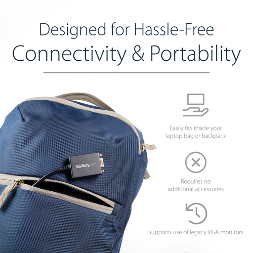 Mit dem DP-zu-VGA-Adapter können Sie Ihren DisplayPort-Laptop oder -Desktop-Computer an einen VGA-Bildschirm anschließen. Der Adapter unterstützt Plug-and-Play-Konnektivität und garantiert damit die mühelose Einrichtung