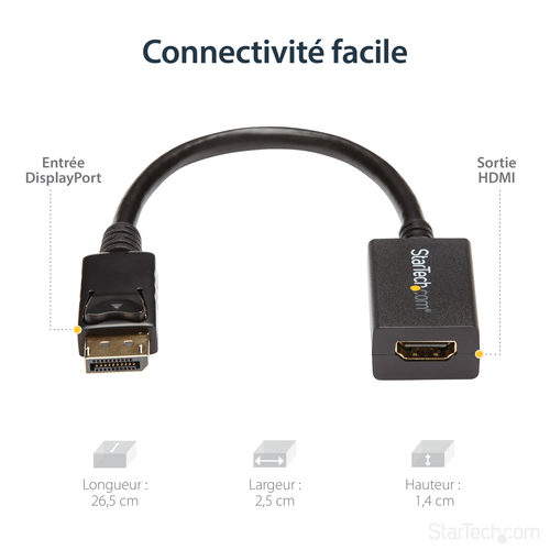 Der Artikel ".com DisplayPort auf HDMI Video Adapter / Konverter (Stecker/Buchse) - DP zu HDM..." von Startech aus der Kategorie Video Kabel/Adapter hat eine Höhe von 14 mm, eine Tiefe von 265 mm und eine Breite von 25 mm. Der Artikel ist mit einem 0,21 m langem Kabel ausgestattet und ist Schwarz. Der Artikel wiegt 20 g.
