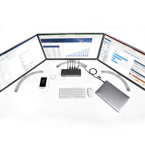 StarTech.com USB-C & USB-A Dock - Hybrid Universal Triple Monitor Laptop Docking Station DisplayPort & HDMI 4K 60Hz - 85W Power [DE-Version, German Keyboard]