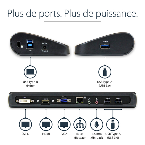StarTech.com Dual Monitor USB 3.0 Laptop Docking Station mit HDMI/DVI/VGA, 3x USB-A Hub, GbE, Audio, Universal Type-A Dock für Windows/macOS/ChromeOS - TAA Konform