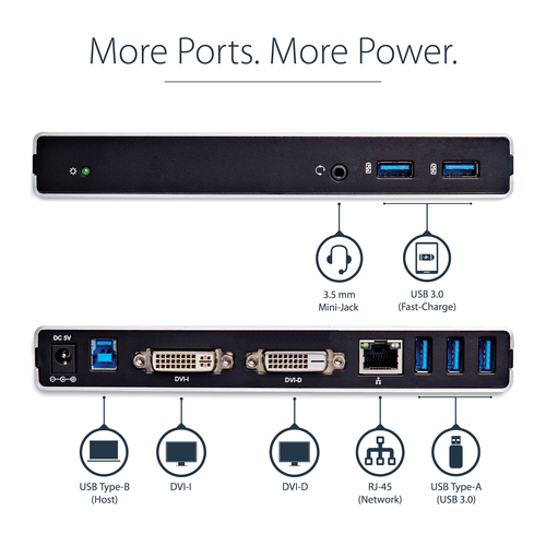 StarTech.com Dual Monitor Dockingstation mit USB 3.0 auf DVI-I & DVI-D und Adaptern für VGA & HDMI, 5x USB 3.0 & Audio - Vertikale DVI Dockingstation für ChromeOS, Mac & Windows