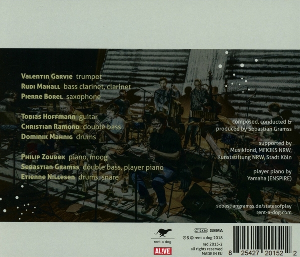 Beschreibung:Alto Saxophone: Pierre Borel, Artwork: Tina van de Weyer, Clarinet: Rudi Mahall, Double Bass: Christian Ramond, Double Bass, Player Piano, Composed By: Sebastian Gramss, Drums, Percussion: Dominik Mahnig, Drums, Snare: Etienne Nillesen, Electric Guitar: Tobias Hoffmann, Mastered By: Reinhard Kobialka, Mixed By: Christian Heck, Photography By: Frank Schindelbeck, Piano, Piano [Prepared]: Philip Zoubek, Recorded By: Christian Heck, Recorded By: Lukas Lohner, Technician [Technical Support]: Joker Nies, Trumpet: Valentin Garvie, VJ [Live Visuals]: Ludwig Kuckartz, Labelcode 2720152 (rad 2015-2), Copyright (c) Rent A Dog, Phonographic Copyright (p) Rent A Dog, Recorded At Alte Feuerwache, Köln, Recorded At Enjoy Jazz, Recorded At Domicil, Dortmund, Mixed At Tonart Studio, Kerpen-Horrem, Mastered At Topaz Studio