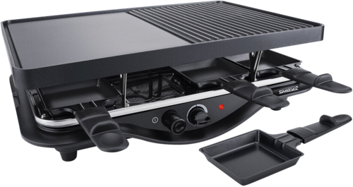 Der Artikel "Guß-Raclette RC 28" von der Marke Steba vom Typ Raclette und hat die Farbe Schwarz, Chrom. Der Artikel verfügt über LED-Anzeigen: Leistung. Das Produkt hat ein Gewicht von 2,5 kg.