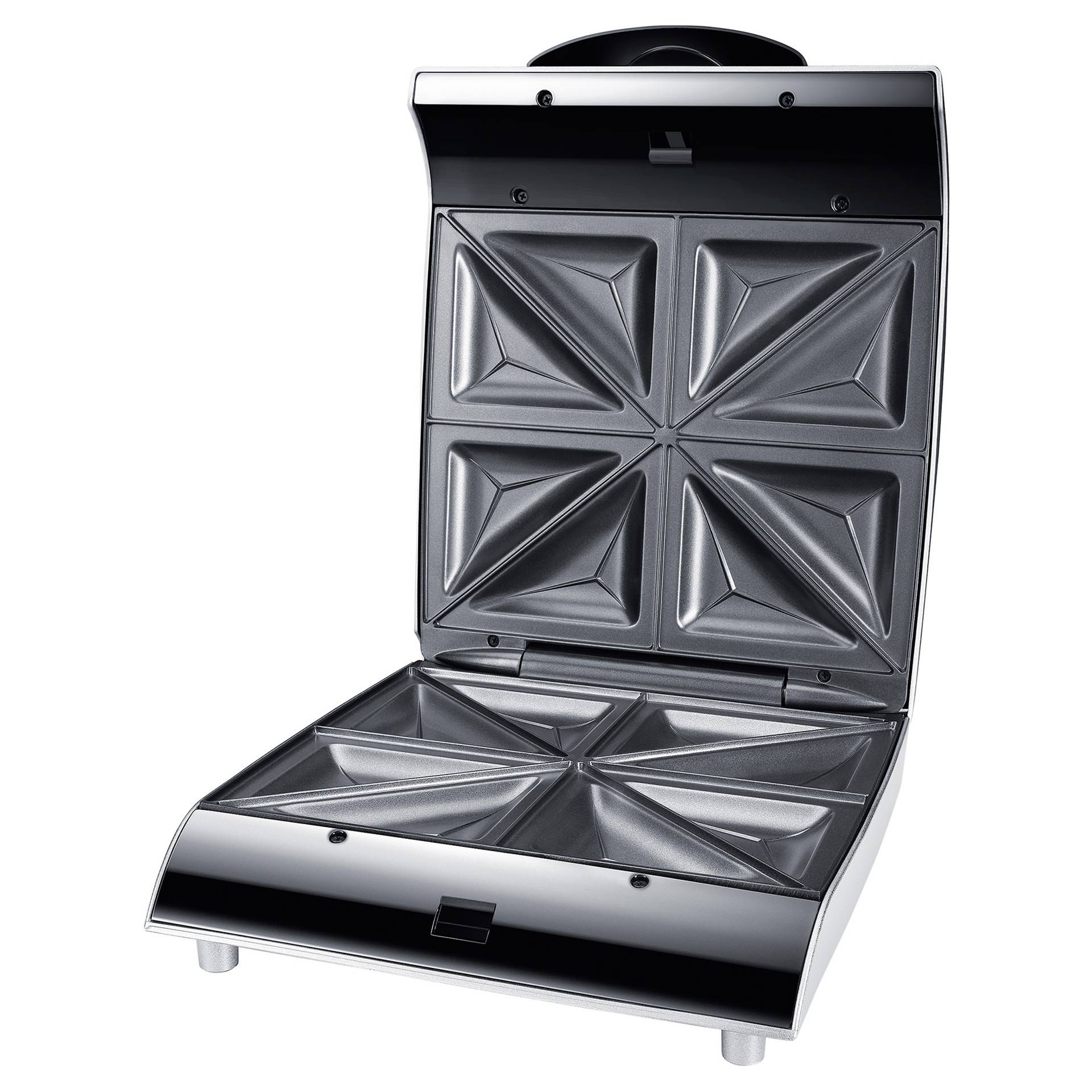Details: Allgemein Produkttyp Sandwichmaker Farbe Silver/Black Verschiedenes Äußere Merkmale Fingerabdruckabweisend, Anti-Rutsch-Füße Sicherheitsmerkmale Sicherheitsschloss Im Lieferumfang enthaltenes Zubehör Rezeptbuch Energieversorgung Max. Energieverbrauch 1200 W Abmessungen und Gewicht Breite 27 cm Tiefe 35 cm Höhe 12 cm