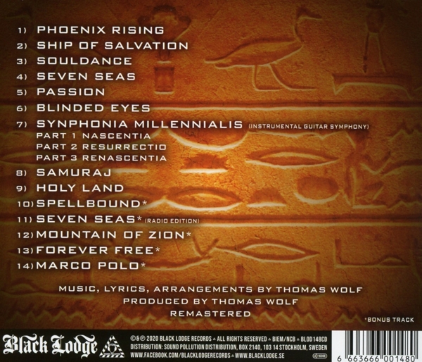 1.1 Phoenix Rising1.2 Ship Of Salvation1.3 Souldance1.4 Seven Seas1.5 Passion1.6 Blinded Eyes1.7 Synphonia Millennialis (Instrumental Guitar Symphony)1.8 Part 1 Nascentia1.9 Part 2 Resurrectio1.10 Part 3 Renascentia1.11 Samuraj1.12 Holy Land |