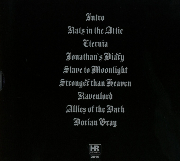 01. "Intro" 02. "Rats in the attic" 03. "Eternia" 04. "Jonathan's diary" 05. "Slave to moonlight" 06. "Stronger than Heaven" 07. "Ravenlord" 08. "Allies of the dark" 09. "Dorian Gray"