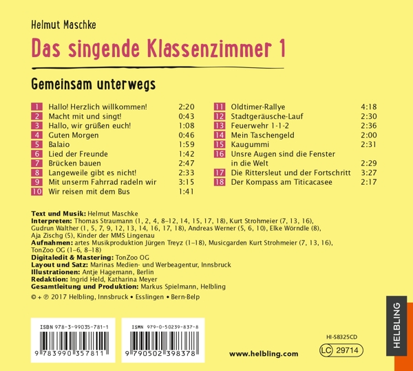01. Straumann, Thomas / Walther, Gudrun / Kinder der MMS Lingenau "Hallo! Herzlich willkommen!" 02. Straumann, Thomas / Kinder der MMS Lingenau "Macht mit und singt!" 03. Kinder der MMS Lingenau "Hallo, wir grüßen euch!" 04. Straumann, Thomas / Kinder der MMS Lingenau "Guten Morgen" 05. Walther, Gudrun / Werner, Andreas / Zischg, Aja / Kinder der MMS Lingenau "Balaio" 06. Werner, Andreas / Kinder der MMS Lingenau "Lied der Freude" 07. Strohmeier, Kurt / Walther, Gudrun / Kinder der MMS Lingenau "Brücken bauen" 08. Straumann, Thomas / W?rndle, Elke / Kinder der MMS Lingenau "Langeweile gibt es nicht!" 09. Straumann, Thomas / Walther, Gudrun / Kinder der MMS Lingenau "Mit unserm Fahrrad radeln wir" 10. Straumann, Thomas / Werner, Andreas / Kinder der MMS Lingenau "Wir reisen mit dem Bus" 11. Straumann, Thomas / Kinder der MMS Lingenau "Oldtimer-Rallye" 12. Straumann, Thomas / Walther, Gudrun / Kinder der MMS Lingenau "Stadtger?usche-Lauf" 13. Strohmeier, Kurt / Walther, Gudrun / Kinder der MMS Lingenau "Feuerwehr 1-1-2" 14. Straumann, Thomas / Walther, Gudrun / Kinder der MMS Lingenau "Mein Taschengeld" 15. Straumann, Thomas / Kinder der MMS Lingenau "Kaugummi" 16. Strohmeier, Kurt / Walther, Gudrun / Kinder der MMS Lingenau "Unsre Augen sind die Fenster in die Welt" 17. Straumann, Thomas / Walther, Gudrun / Kinder der MMS Lingenau "Die Rittersleut und der Fortschritt" 18. Straumann, Thomas / Walther, Gudrun / Kinder der MMS Lingenau "Der Kompass am Titicacasee"