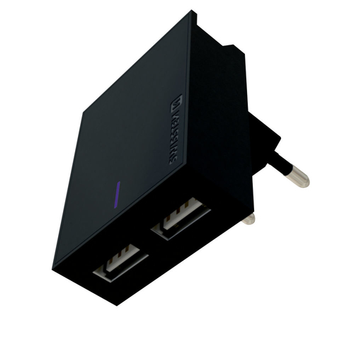 Travel Charger Smart IC, 2 x USB, 3A, black, Blister (22031000) Swissten