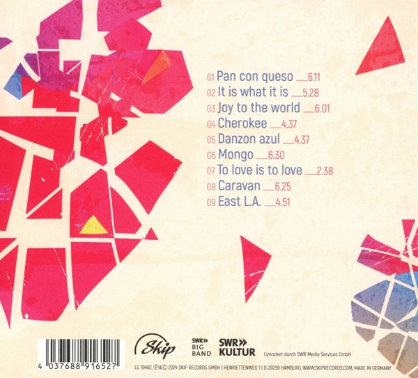 01. "Pan con queso" 02. "It is what it is" 03. "Joy to the world" 04. "Cherokee" 05. "Danzon azul" 06. "Mongo" 07. "To live is to love" 08. "Caravan" 09. "East L.A."