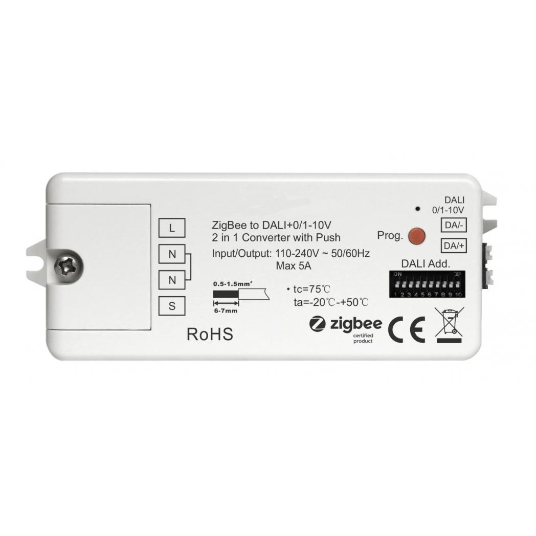 Der EOS 10 Zigbee to DALI Converter ist eine Zigbee-DALI-Schnittstelle sowie eine Zigbee-0-10V/1-10V-Schnittstelle, die Zigbee-Signale empfängt und über universelle Zigbee-Gateways und Zigbee-Fernbedienungen gesteuert werden kann. Diese Zigbee-DALI-Schnittstelle basiert auf Zigbee 3.0, was eine hohe Interoperabilität mit Zigbee-Systemen anderer Hersteller gewährleistet. Der Controller wandelt das Funksignal in DALI sowie 0-10V/1-10V um.
