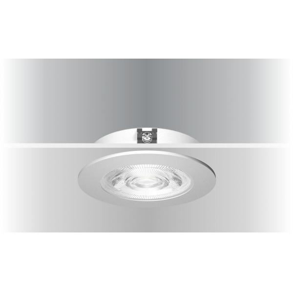 Gehäusefarbe: weiß Watt: 5Watt (CREE LED) Lichtfarbe: 4000K, CRI>90 Lichtstrom: 398 lm Abstrahlwinkel: 36° Stromversorung: Konstantstrom mit 200mA und 22-26 Vdc (Netzteil siehe Zubehör) Kopfdurchmesser: 68 mm Gesamthöhe: 16 mm Lochmass: 54-58mm Dimmbar: Ja über spezielles Netzteil, siehe Zubehör