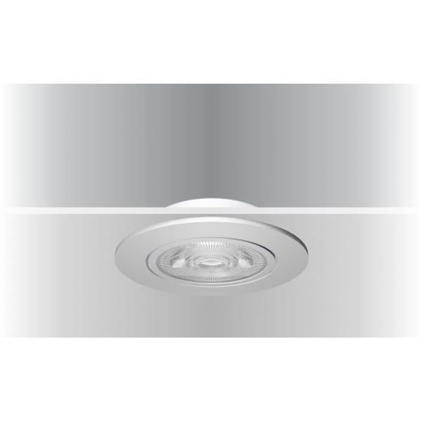 Gehäusefarbe: weiß Watt: 5Watt (CREE LED) Lichtfarbe: 4000K, CRI>90 Lichtstrom: 398 lm Abstrahlwinkel: 36° Stromversorung: Konstantstrom mit 200mA und 22-26 Vdc (Netzteil siehe Zubehör) Kopfdurchmesser: 80 mm Gesamthöhe: 16 mm Lochmass: 62-72mm Dimmbar: Ja über spezielles Netzteil, siehe Zubehör